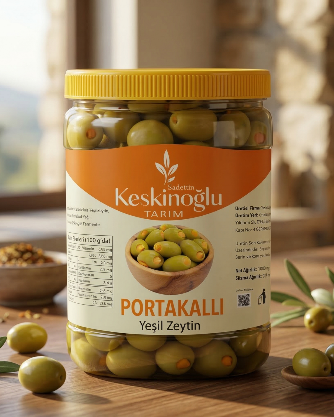 Portakallı Zeytin, geleneksel zeytin üretimi ile taze portakal kabuğunun ferah aromasıyla hazırlanan özel bir gurme zeytin çeşididir. Özenle seçilen kaliteli zeytinler, doğal yöntemlerle fermente edilerek portakalın hafif narenciye dokunuşu ile buluşturulur.